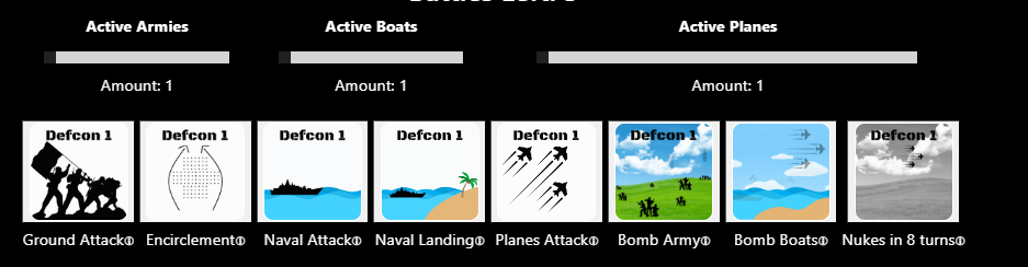 So I added it back in, so that it was simpler and less laggy. Now, after doing an attack, the soldiers in that attack are engaged until the end of the turn. This means if you want to have 5 attacks in a turn, you need to split up your armies between those 5 attacks. I added this mechanic for boats and planes as well. In the future we will add more depth to this element. Hopefully we can find a way to increase the number of attacks per turn, with some type of "ready" system instead of the current 5 attacks system with a pass button. We may also add a "tactical retreat", which would use up attacks (maybe 1 or 2) but would move reserve troops back to active.